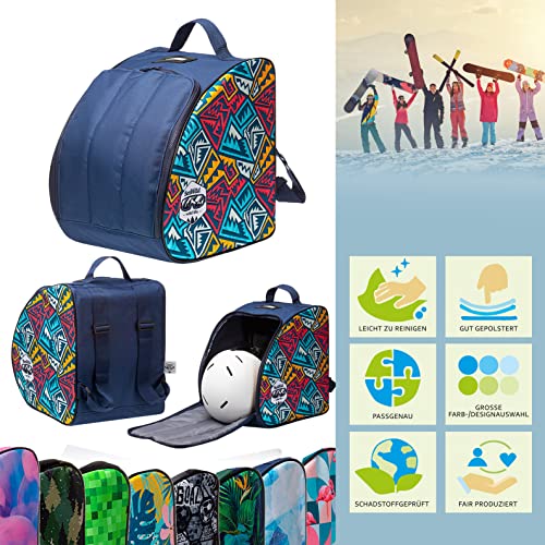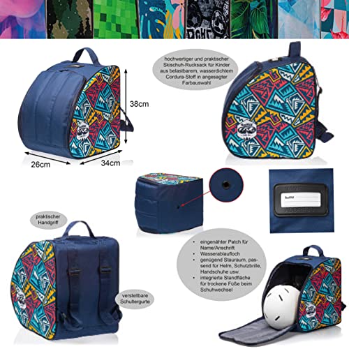 Bambiniwelt, borsa per scarponi da sci per bambini, superficie di appoggio integrata, foro di drenaggio dell’acqua per casco, occhiali da sci e guanti.