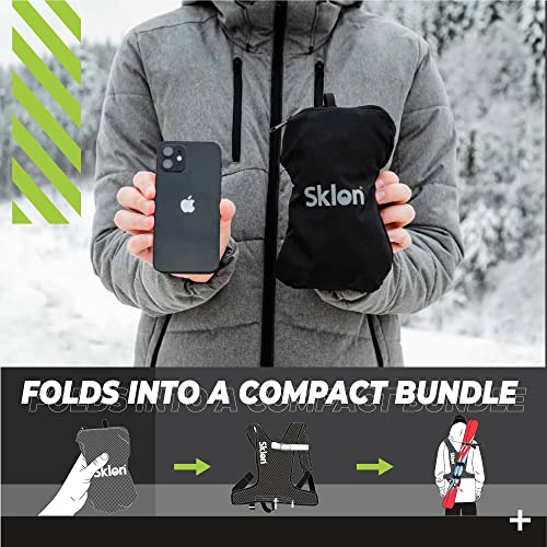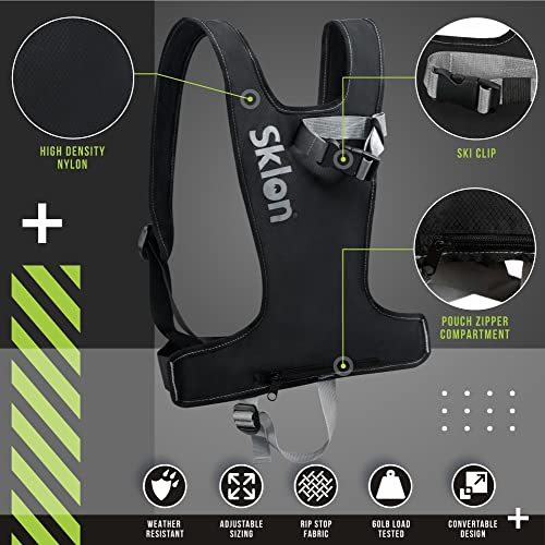Sklon Imbracatura per portasci e bastoncini per adulti – Evita la fatica e trasporta facilmente sci e bastoncini sulla schiena – Leggera e compatta – HoneyComb, colore nero
