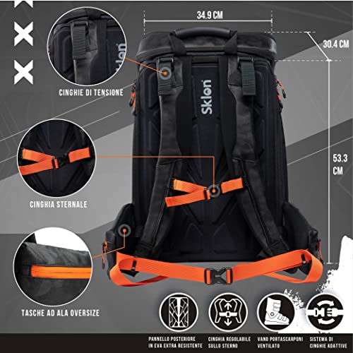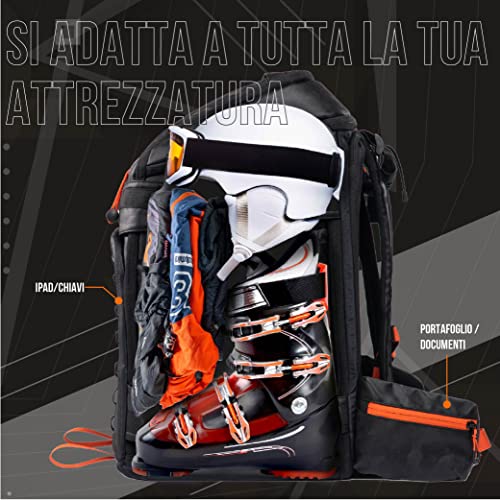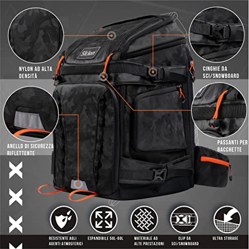 Sklon Zaino per scarponi da sci e snowboard – Espansione da 55 – 65 litri – Il pacchetto impermeabile per sport invernali per viaggiare consente di trasportare la tua attrezzatura da sci e snowboard con stile