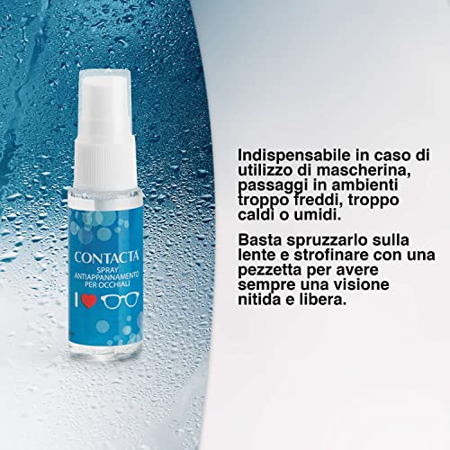 CONTACTA ANTIFOG spray antiappannamento per occhiali indispensabile in caso di utilizzo di mascherina, passaggi in ambienti troppo freddi, troppo caldi o umidi e in molte altre situazioni