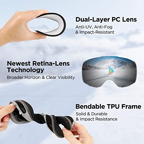 Specification: LEMEGO Occhiali da Sci Snowboard Maschera Sci Unisex Maschera da Sci OTG Antivento Anti Fog UV 400 per Uomini e Donne dulti e Adolescenti, per Sci Snowboard e Sport Invernali