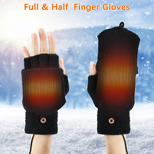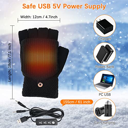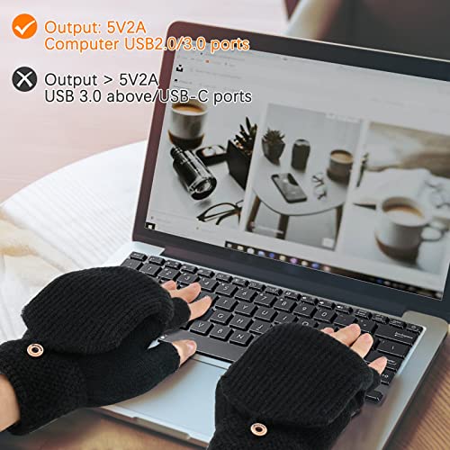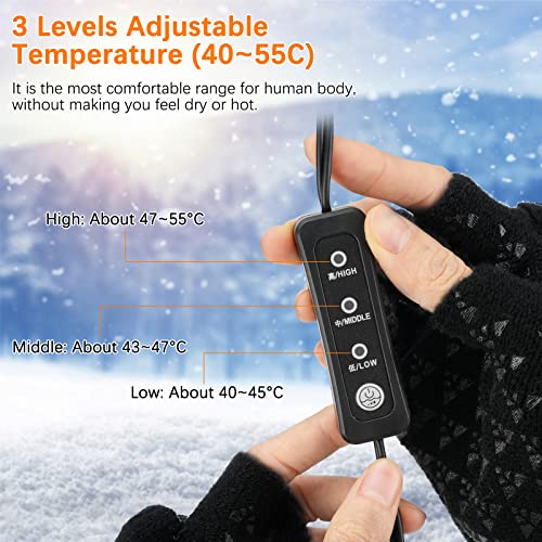 Auniq Guanti riscaldati USB per donne e uomini, Guanti per laptop invernali senza dita e mezza Guanti riscaldanti a temperatura regolabile e doppia faccia per Ciclismo, Escursionismo, Sci