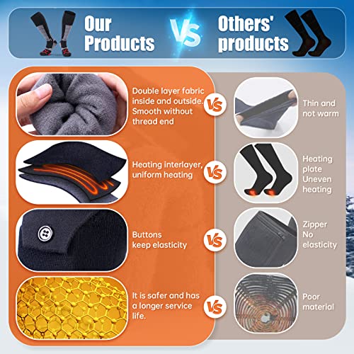 【Calze riscaldate ricaricabili di Type-C】 Le nostre calze riscaldate ricaricabili sono dotate di due batterie da 5000 mAh, offrono un calore duraturo fino a 4-8 ore, sono eccellenti per attività all’aperto come sci, ciclismo, escursionismo, pesca e campeggio. (Nota: caricare completamente le batterie prima del primo utilizzo)