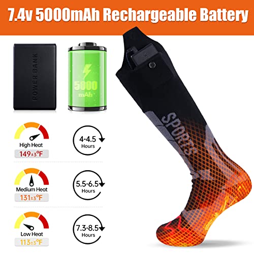 Calzini Riscaldati,Calze di Riscaldamento Ricaricabili 5000 mAh, calze riscaldate con 3 Impostazioni di Calore, calze riscaldabili a Batteria Donna Uomo per Campeggio Sci Pesca Caccia