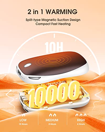 SUPPOU Scaldamani Ricaricabile 10000mAh,Riutilizzabile Scaldamani Elettrico Portatile USB,2 IN 1 Power Bank,Con 40-55°C Riscaldamento 3a Marcia,per Outdoor,Campeggio,Natale Regalo