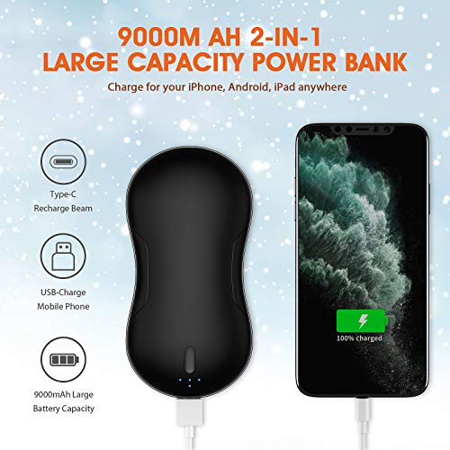 【Scaldamani 2 in 1 con capacità di 9000 mAh, questo scaldamani sarà un grande partner di sport all’aria aperta, campeggio, caccia e sci, ti farà riscaldare tutto l’inverno. Può essere utilizzato anche come power bank per dispositivi Type-C, Micro Port. Lasciate ancora sentire calore quando si va fuori durante il giorno invernale e ricaricare il telefono in caso di emergenza allo stesso tempo.