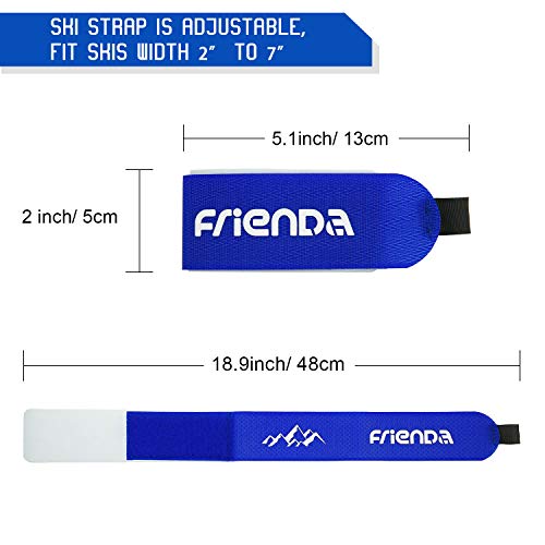 Cinghie regolabili per sci: gli involucri regolabili di gancio e loop sono in larghezza 2 pollici / 50 mm, 18,9 pollici / 480 mm, si adattano alla maggior parte degli sci da montagna