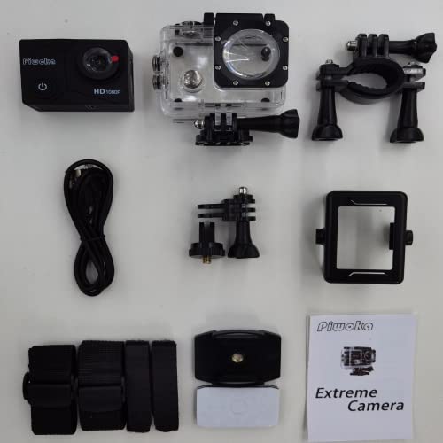 Specification: Piwoka Action Cam 1080P/12MP, 30M Impermeabile Fotocamera Subacquea con Schermo 2 Pollici,140° Grandangolare Sports Cam con Accessori Kit (Nero)