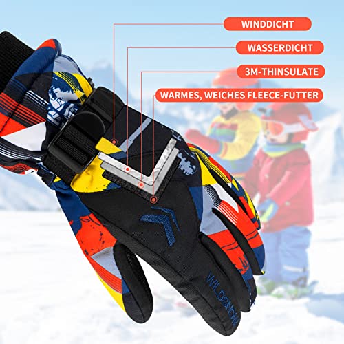 Guanti da sci per bambini, impermeabili, foderati, eleganti, invernali, per bambini, antivento, per bambini, per bambini dai 3 ai 12 anni