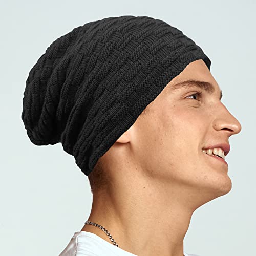UPhitnis Cappello Beanie Uomo Inverno – Cappello Invernale Unisex Uomo Donna Berretto Lungo Cappello Lavorato A Maglia Cappuccio Inverno Nero Uomo Caldo Berretto Lavorato A Maglia Foderato